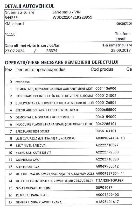 Lucrari efectuate le Tiriac Auto de unde a fost cumparata si unde a fost intretinuta si in trecut.